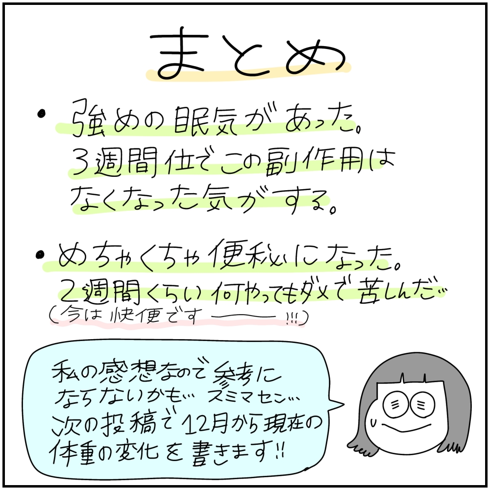 便秘の症状は2週間くらいしてマシになったかな…!